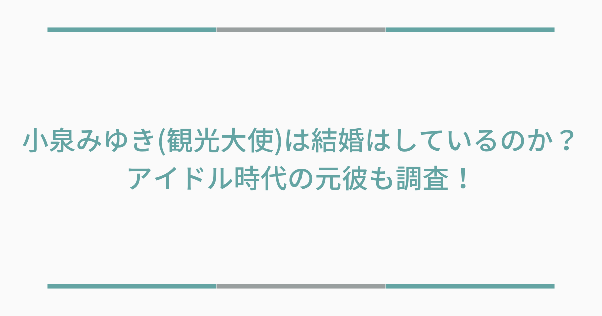 今回は、小泉みゆき(観光大使)は結婚はしているのか?アイドル時代の元彼も調査!というタイトルでお届けをしました。